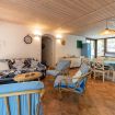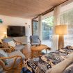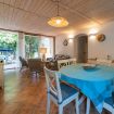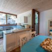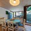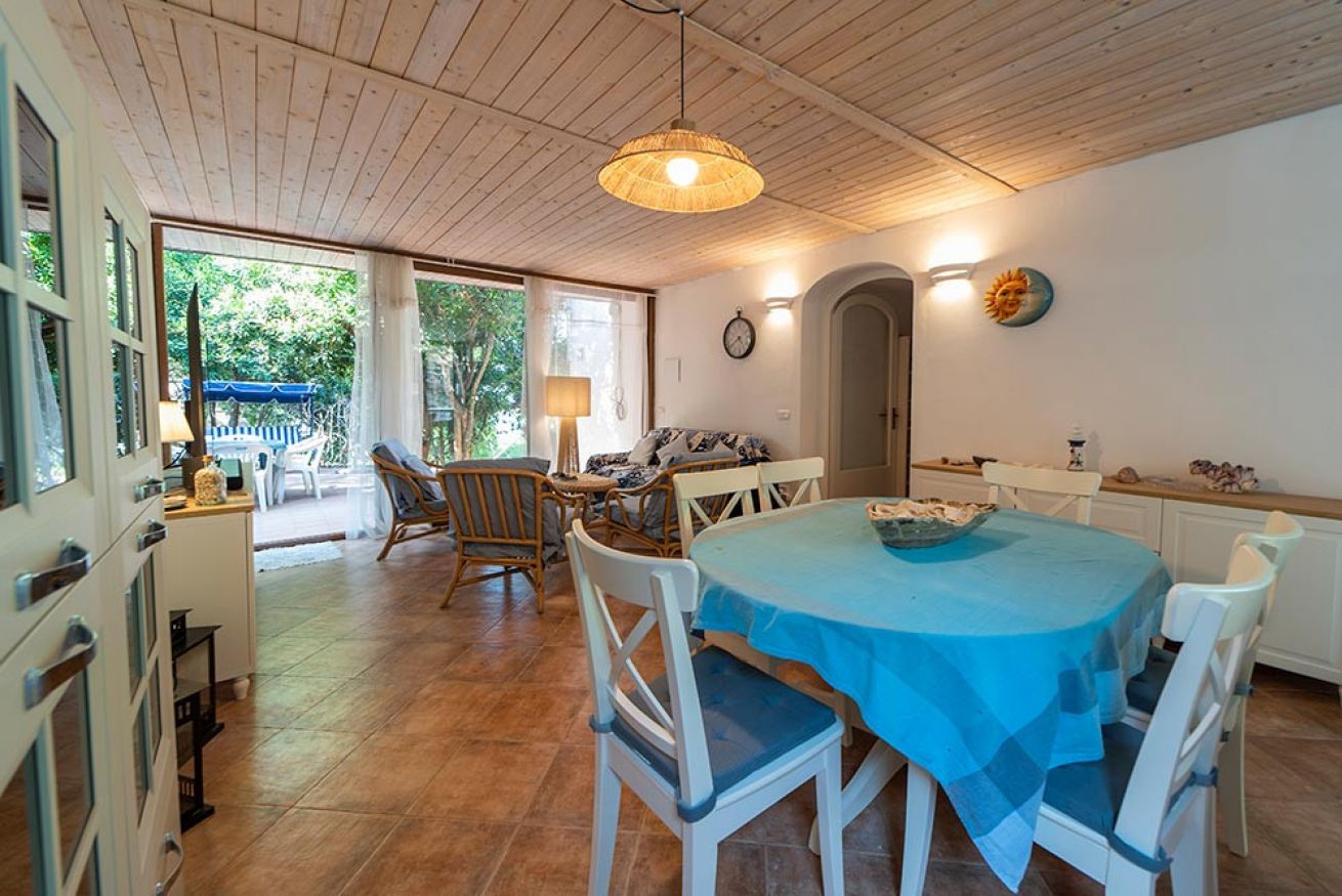 Salendo pochi gradini si accede alla terrazza attrezzata, ideale per mangiare all’aperto. Una grande vetrata conduce al soggiorno con angolo cottura e accesso a un balcone che si affaccia sul retro della casa, dove si trova anche uno spazio barbecue.