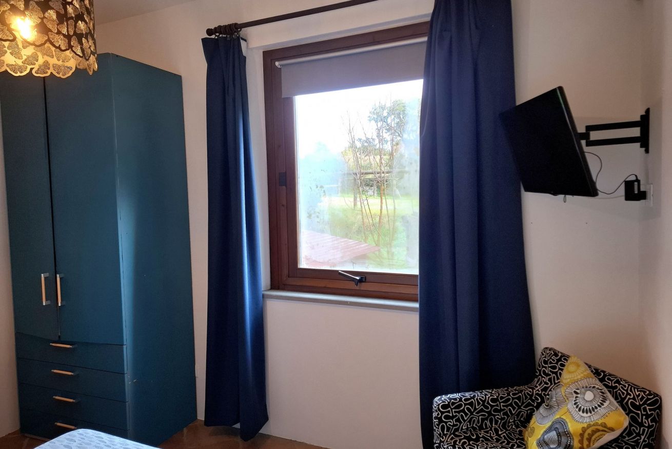 La camera matrimoniale, ampia e confortevole, è dotata di TV e aria condizionata; su richiesta è disponibile anche una culla, rendendo l’alloggio adatto anche a coppie con bambini.