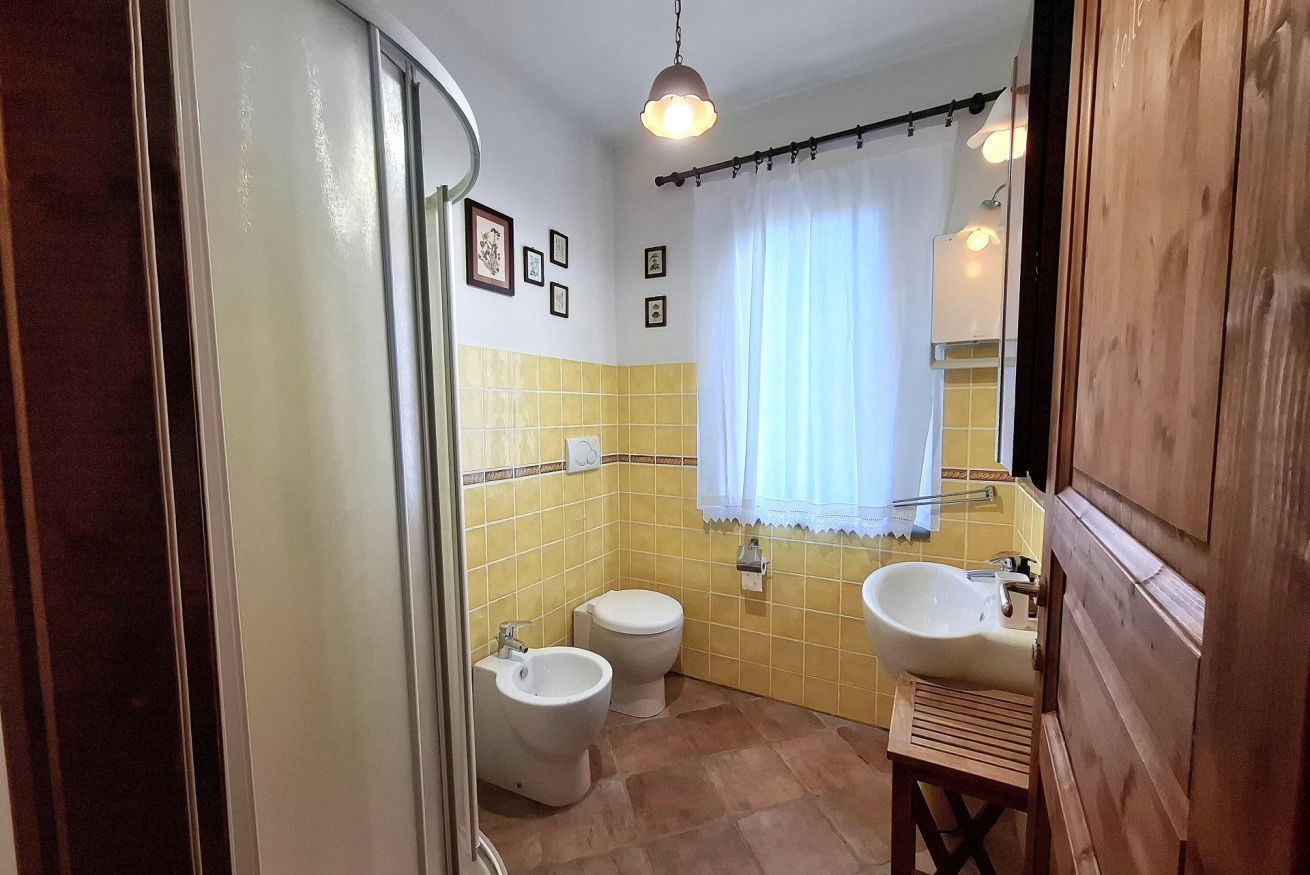 Il bagno è spazioso, finestrato e completo, con una comoda doccia.